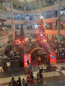 Kaubakeskus on enne jõule paksult (väga paksult) rahvast täis, pildilt võib näha kuidas nelja (miks nii palju) jõulukuuse all rabavad rahvamassid odavat kaupa. Vähemalt selles vaates on aus pilt, mis pühad need jõulud on …